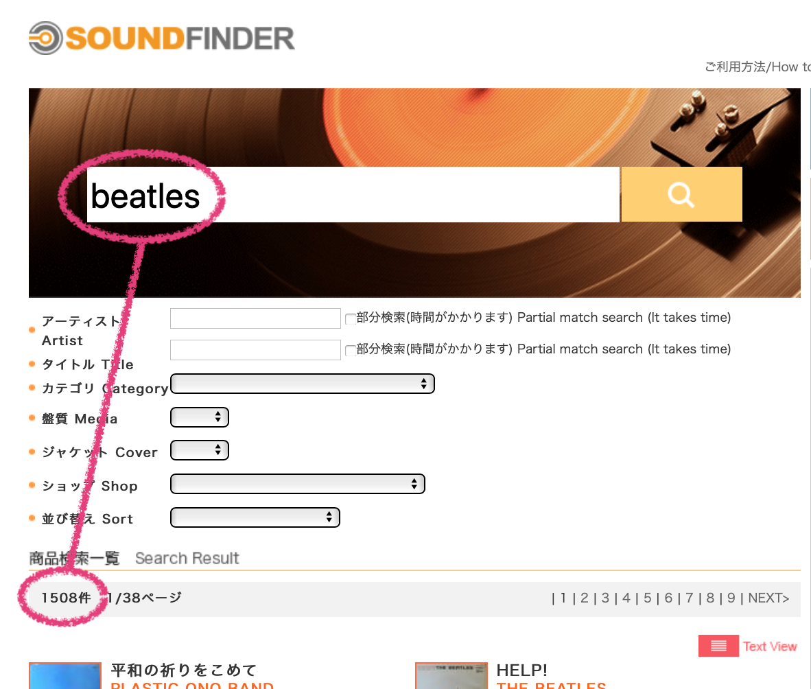 アルファベット「beatles」での検索結果は1508件でした。